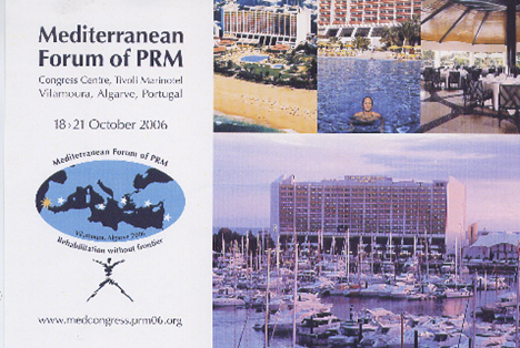 The 6th Mediterranean Congress of P.R.M. took place in VILAMOURA of Algarve - Portugal, from October 18 to 21, 2006. The congress President was Dr. Jorge Lains. The Portuguese Society of PRM with president Dr. Pedro Pinto Cantista contributed a lot to the organization and success of the congress.